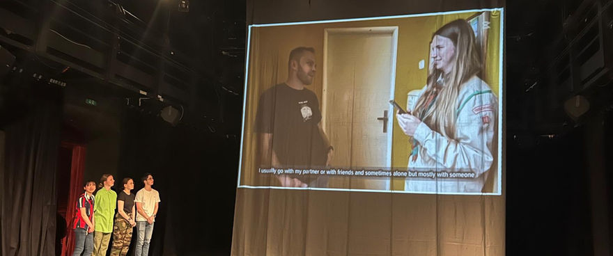 At the beginning of April 2025, twelve drama students took part in an Erasmus+ group project that began in Saint-Malo, France. In six mixed groups with students from Lycée Jacques Cartier, they developed the first concepts of video projects and started collecting data on the theme Theatre and Society through street surveys. The project also included participation in an international high school theatre festival, where young actors shared experiences in workshops and performances with peers from France, Canada, Mauritius, and Spain.
